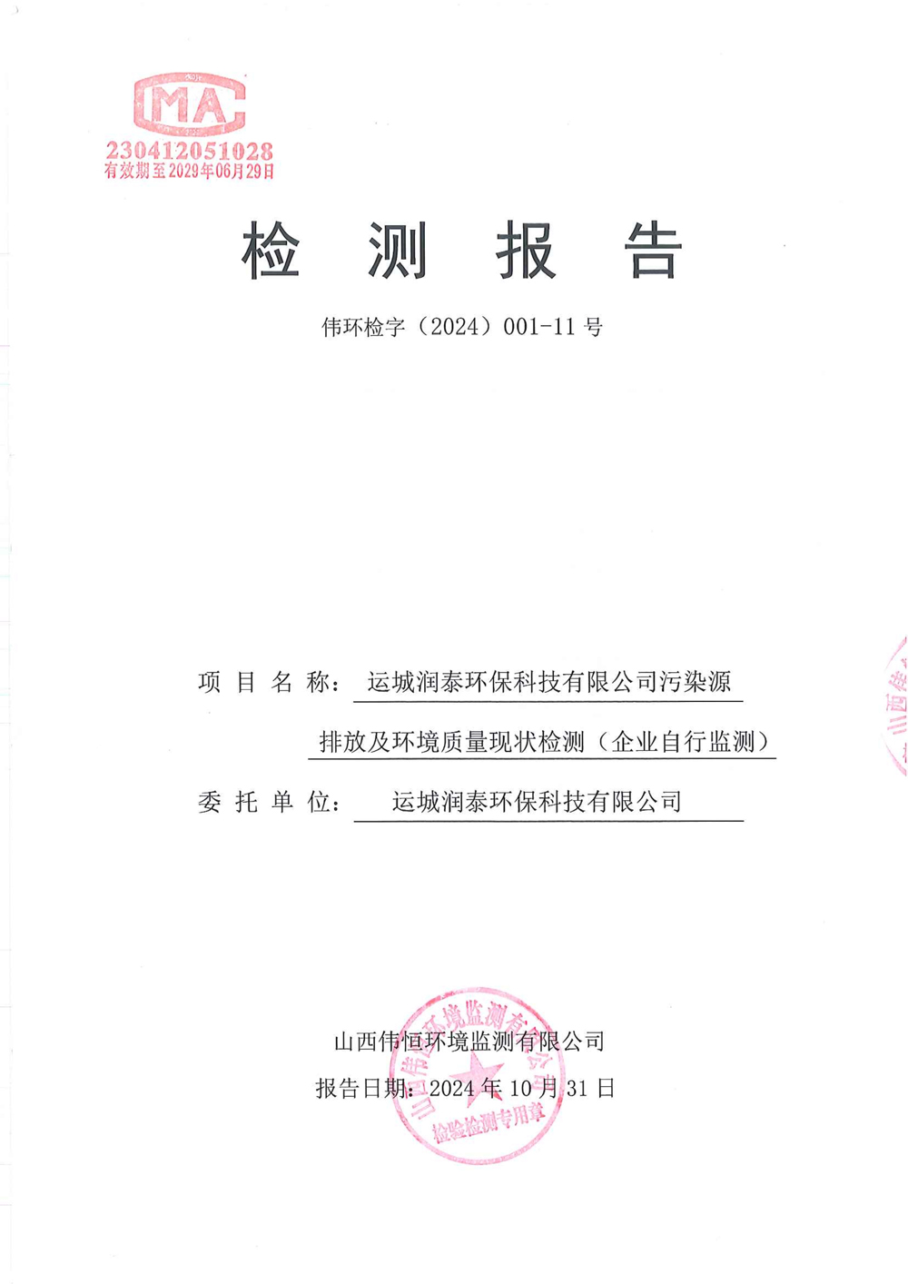 2024年潤泰環(huán)保十月報告-公示
