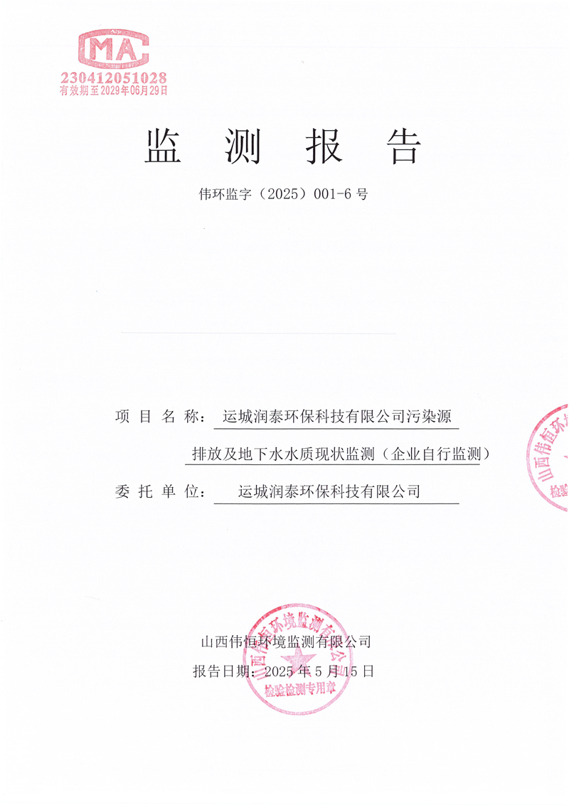 2025年潤(rùn)泰環(huán)保五月份自行監(jiān)測(cè)報(bào)告