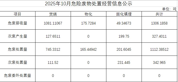 2025年10月危險廢物處置經(jīng)營信息公示