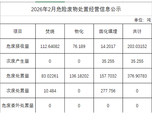 2026年2月危險(xiǎn)廢物處置經(jīng)營(yíng)信息公示