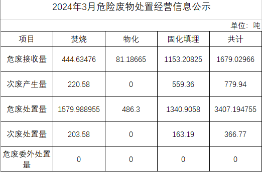 3月危險(xiǎn)廢物處置經(jīng)營(yíng)信息公示